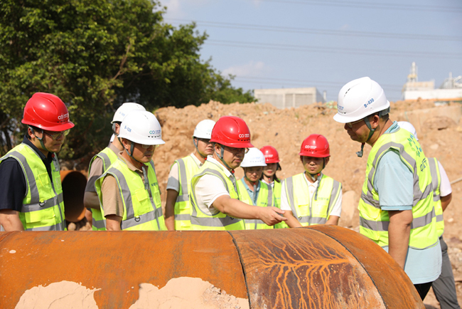 8月8日,華潤微電子地塊排洪渠遷改工程(下稱華潤微項目)順利通水,標(biāo)志著項目建設(shè)取得階段性成果,并獲得業(yè)主單位深圳市寶安區(qū)水務(wù)局來信表揚。9日下午,公司常務(wù)副總經(jīng)理(掛任)、董事楊凱華赴華潤微項目現(xiàn)場調(diào)研,向項目建設(shè)團隊取得的成績表示祝賀,并實地查看項目建設(shè)情況,現(xiàn)場協(xié)調(diào)解決項目推進中的問題和困難。